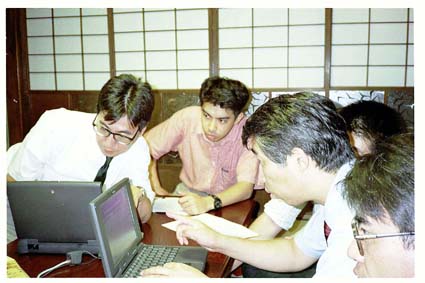 イントラネットで今回は情報の共有化実験 無線LANで繋いだパソコンどうしで文書やら絵やら.... 誰だ、アダルトを見たいなんて言うのは 皆んな本当は見たいのかもしれないけど 今はTPOが違うんだから でも、身を乗り出すようにしての勉強会でした