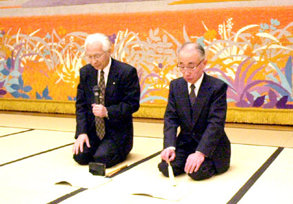 今年は山田理事長による謠(宝生流のW鶴亀Xの中から「庭の砂は金銀の〜」のくだり)から始まりました