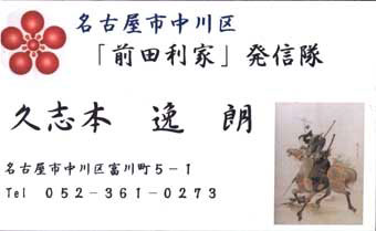 名刺には、利家公のどんちょうの写真と、梅鉢紋が入っているんです