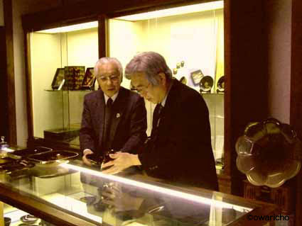短い尾張町の説明の後、老舗交流館の展示品を見て戴くと