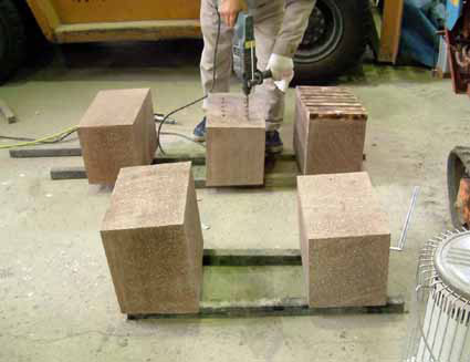 石材にドリルで穴を開け、木材部からボルトをねじ込む形なので、簡単にははく離しないようになってます。