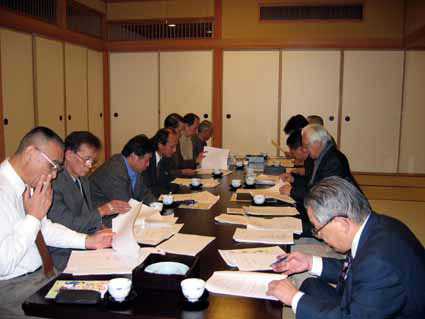 継続することを信条とする尾張町の2月特別理事会=二日会です。 2月2日前後に行うのでつけられたこの会は 湯涌温泉「あたらしや」で、総会前の理事会を行うことで全員の気持ちを一つにする! という先人の申し送りを続けているのです。