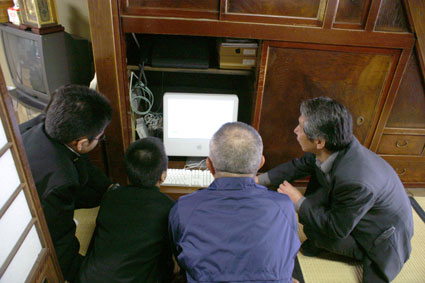 生徒たち三人が老舗交流館に訪ねて来、