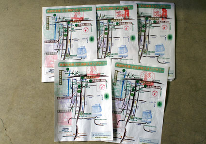 参加用紙に押されるスタンプのとりどりの色が