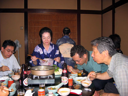 つゆ雨と暑さでへたり気味なのを活気づけようと、今晩の料理は「すき焼き鍋」