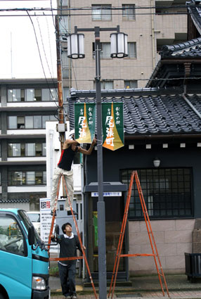 ますます「利家の街・尾張町」が意識されたのを機に、街路灯に掛けるフラッグを新しく作りました。