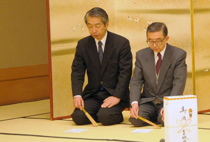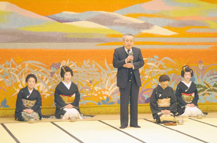 あくまで商い文化にこだわる尾張町らしく、宝生流謡曲「高砂」より千秋楽の一節を、今年は藤ア副市長も一緒に、声高らかに謡い上げました。