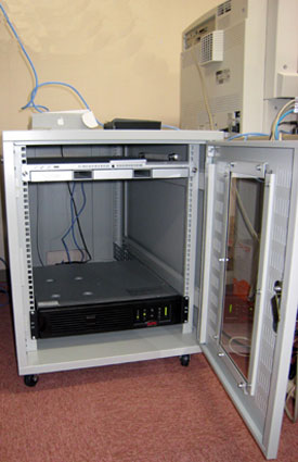 そして見て下さい、Xserverのスリムなデザインを(収納ラックの一番上に設置)......普通サーバーコンピューターは専門家しか操作せず一般の人には目にする機会もないので、デザインにこだわる必要がないはずなのに、見えない部分にも配慮するアップル社の姿勢は、同じく見えないところにまで配慮する商いの姿勢に通じるようです。