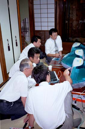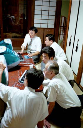輪が広がる勉強会 今回から、商店街の事務局員までもが参加し始めました 街の若手が取り組んでいる無線LANを、この手とこの眼で体感しよう 外観の年齢でなく、若々しい気持ちこそが大事