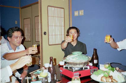 鍋のまつ本にて、威勢の良いスタートの乾杯です