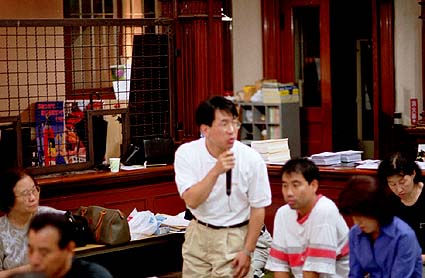 会場はご覧のように、畳敷きの上に座布団をおいて車座に近い状態にしました